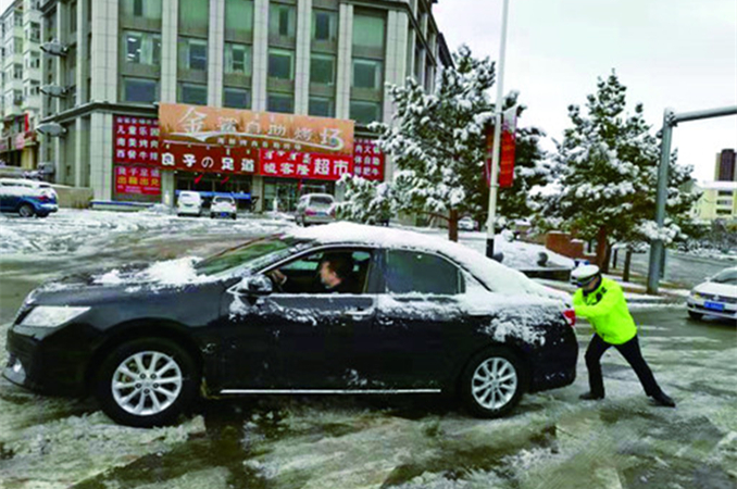 10月24日下午,我盟各地普降大雪,给群众出行带来不便。全盟公安交巡部门第一时间启动恶劣天气应急预案,全员上路指挥疏导交通,救援被困车辆,确保道路畅通