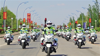 通辽市奈曼旗公安局特巡警车队进入城区巡逻。日前,奈曼旗公安局进行了特巡警警务机制改革,在原有职能基础上,赋予特巡警主城区交通秩序管理、巡逻处警等权力。 孙国成 摄