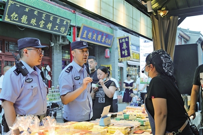 呼和浩特市玉泉区公安分局景区治安派出所民警立足大召寺AAAA级景区及周边治安管控和服务管理实际,加强日常巡逻,积极服务群众、化解矛盾。 李文彬 摄