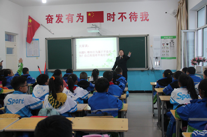 “作为一名学生,我们哪些行为是不能做的?大家请抢答!”这是扎赉特旗检察院未检干警在法治课堂上与学生们进行互动。