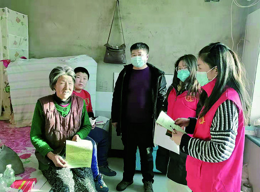 志愿者为贫困家庭讲解疫情防控知识 高塔娜 摄