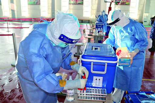 医务工作者正在为群众做核酸检测 王天茹 摄